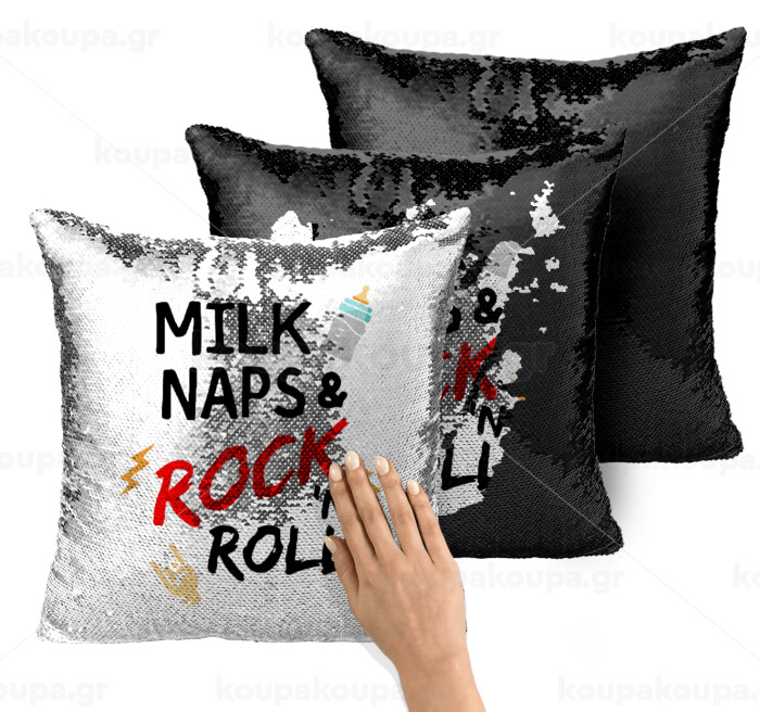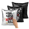 milk naps and Rock n' Roll, Μαξιλάρι καναπέ Μαγικό Μαύρο με πούλιες 40x40cm περιέχεται το γέμισμα