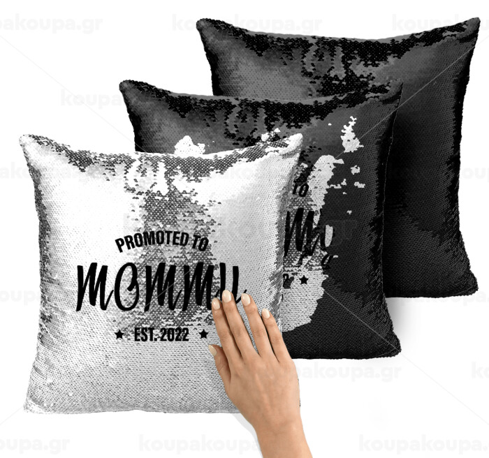 Promoted to Mommy, Μαξιλάρι καναπέ Μαγικό Μαύρο με πούλιες 40x40cm περιέχεται το γέμισμα