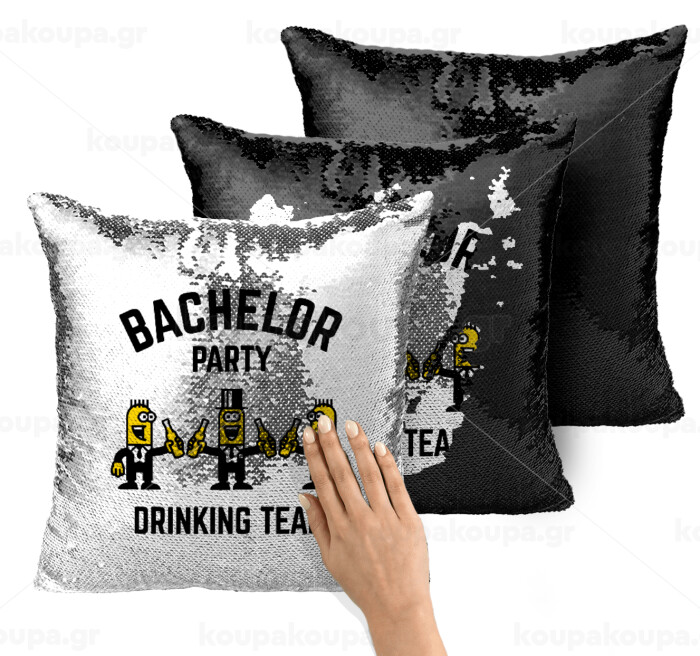 Bachelor Party Drinking Team, Μαξιλάρι καναπέ Μαγικό Μαύρο με πούλιες 40x40cm περιέχεται το γέμισμα
