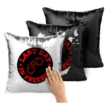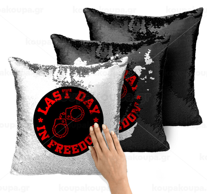 Last day in freedom, Μαξιλάρι καναπέ Μαγικό Μαύρο με πούλιες 40x40cm περιέχεται το γέμισμα