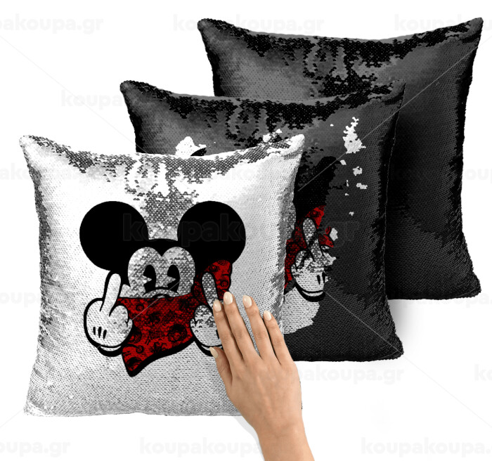 Mickey the fingers, Μαξιλάρι καναπέ Μαγικό Μαύρο με πούλιες 40x40cm περιέχεται το γέμισμα
