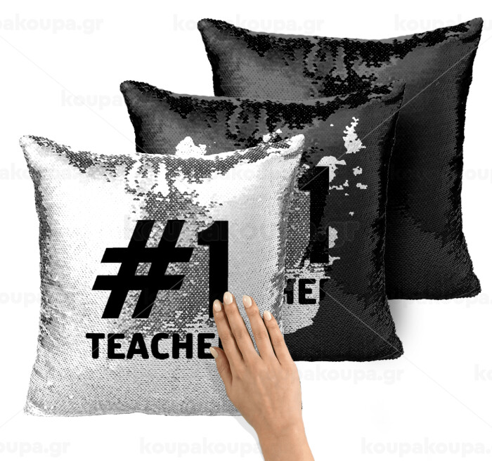 #1 teacher, Μαξιλάρι καναπέ Μαγικό Μαύρο με πούλιες 40x40cm περιέχεται το γέμισμα