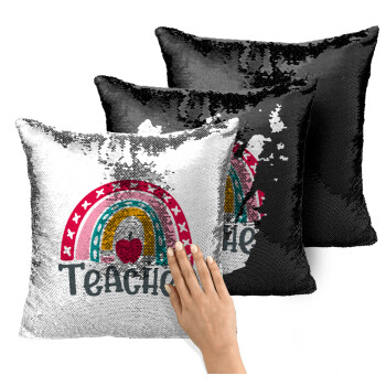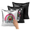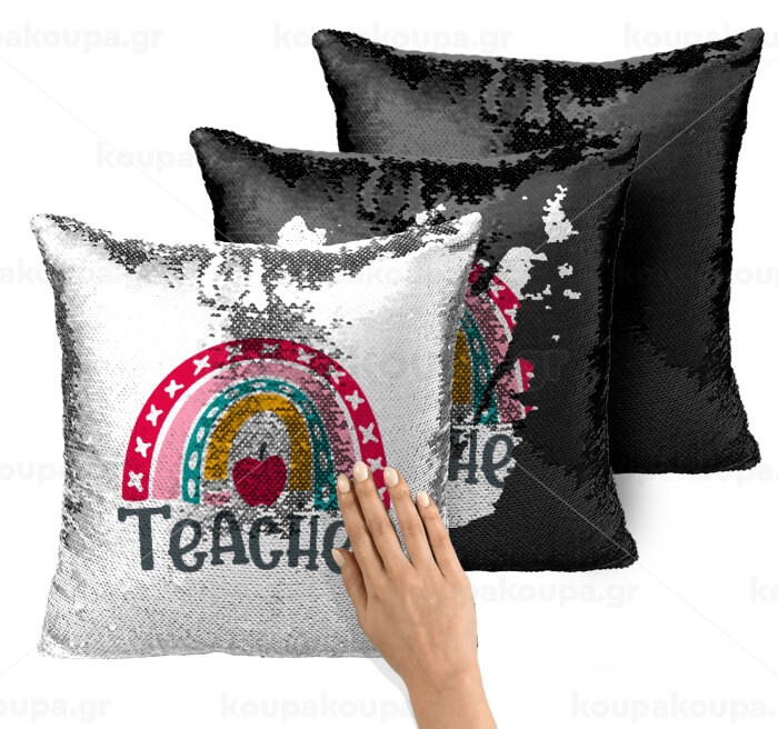 Rainbow teacher, Μαξιλάρι καναπέ Μαγικό Μαύρο με πούλιες 40x40cm περιέχεται το γέμισμα