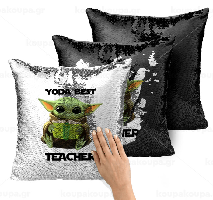 Yoda Best Teacher, Μαξιλάρι καναπέ Μαγικό Μαύρο με πούλιες 40x40cm περιέχεται το γέμισμα