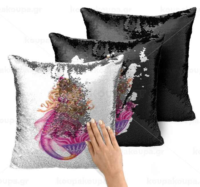 Barbie γοργόνα , Μαξιλάρι καναπέ Μαγικό Μαύρο με πούλιες 40x40cm περιέχεται το γέμισμα