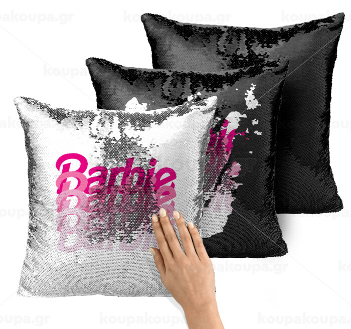 Barbie repeat, Μαξιλάρι καναπέ Μαγικό Μαύρο με πούλιες 40x40cm περιέχεται το γέμισμα