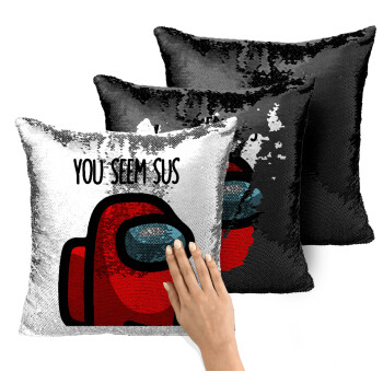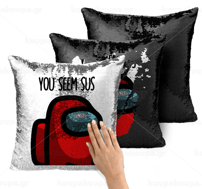 Among US, you seem sus, Μαξιλάρι καναπέ Μαγικό Μαύρο με πούλιες 40x40cm περιέχεται το γέμισμα