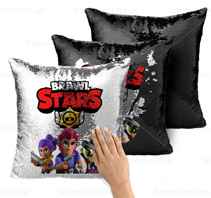 Brawl Stars Blue, Μαξιλάρι καναπέ Μαγικό Μαύρο με πούλιες 40x40cm περιέχεται το γέμισμα