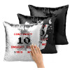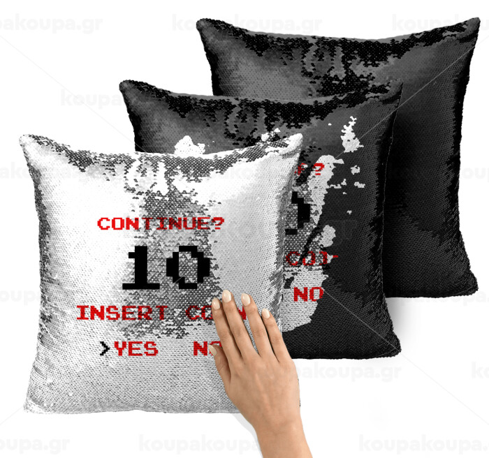 Continue? YES - NO, Μαξιλάρι καναπέ Μαγικό Μαύρο με πούλιες 40x40cm περιέχεται το γέμισμα