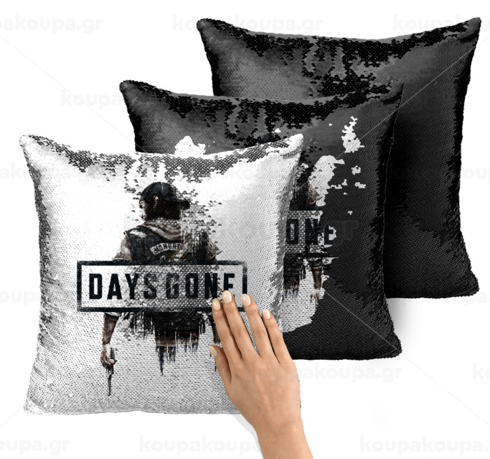 Day's Gone, Μαξιλάρι καναπέ Μαγικό Μαύρο με πούλιες 40x40cm περιέχεται το γέμισμα