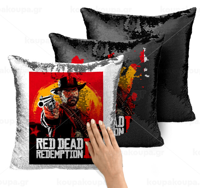 Red Dead Redemption 2, Μαξιλάρι καναπέ Μαγικό Μαύρο με πούλιες 40x40cm περιέχεται το γέμισμα
