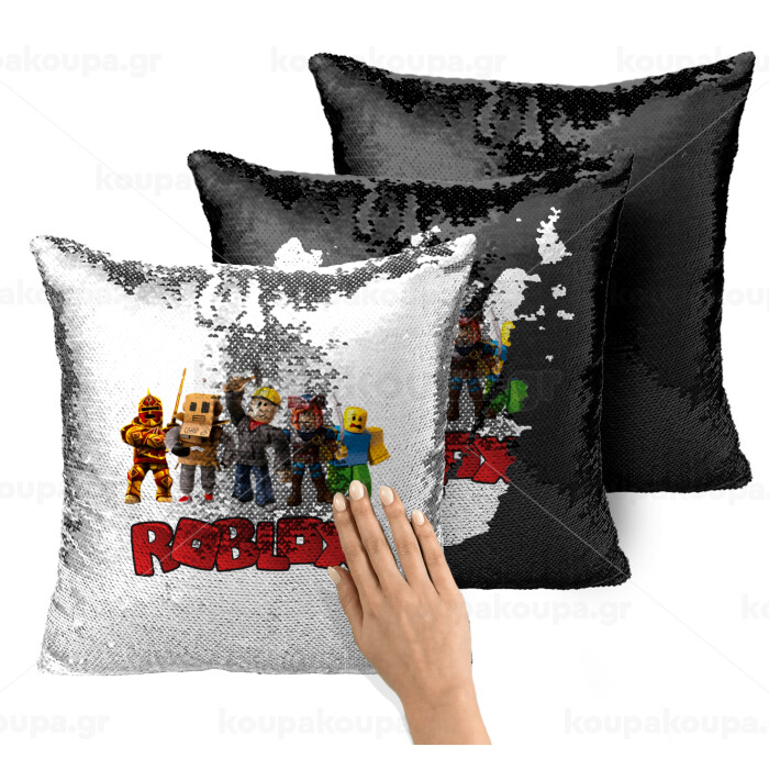 Roblox squad, Μαξιλάρι καναπέ Μαγικό Μαύρο με πούλιες 40x40cm περιέχεται το γέμισμα