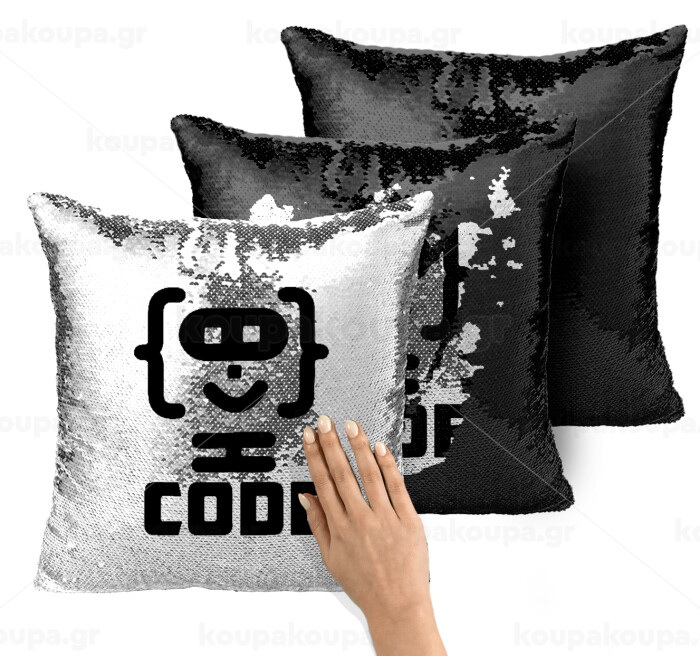 Code Heroes symbol, Μαξιλάρι καναπέ Μαγικό Μαύρο με πούλιες 40x40cm περιέχεται το γέμισμα