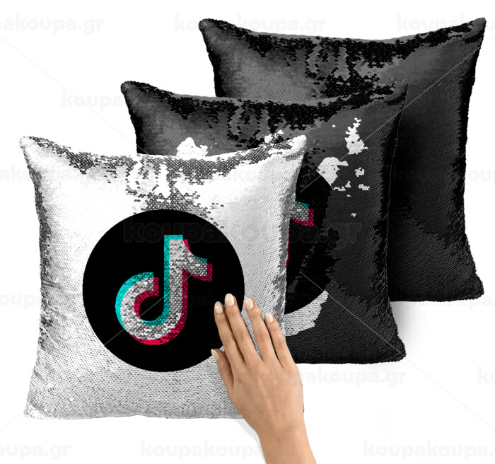TikTok, Μαξιλάρι καναπέ Μαγικό Μαύρο με πούλιες 40x40cm περιέχεται το γέμισμα