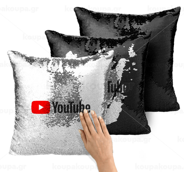 Youtube, Μαξιλάρι καναπέ Μαγικό Μαύρο με πούλιες 40x40cm περιέχεται το γέμισμα