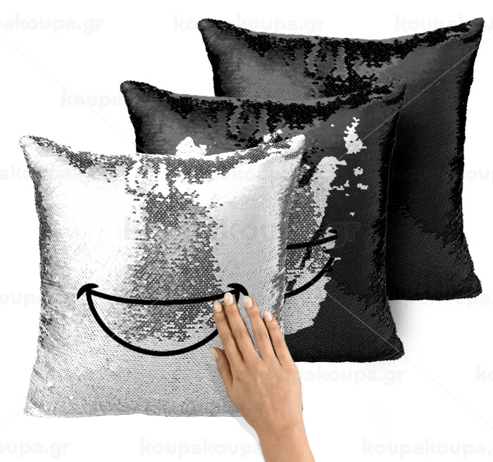 Χαμογέλα, Μαξιλάρι καναπέ Μαγικό Μαύρο με πούλιες 40x40cm περιέχεται το γέμισμα