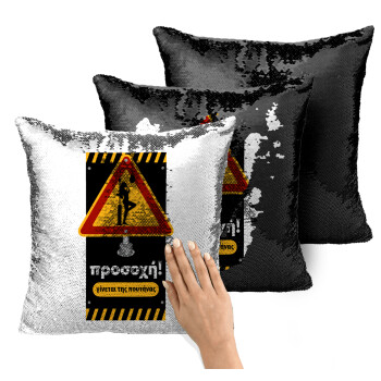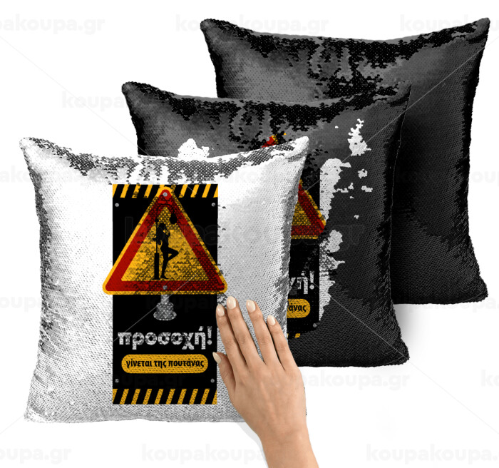 Προσοχή Γίνεται της πουτ.νας, Μαξιλάρι καναπέ Μαγικό Μαύρο με πούλιες 40x40cm περιέχεται το γέμισμα