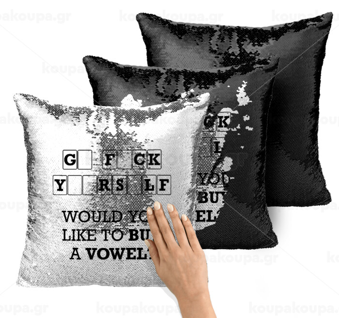 Wheel of fortune, go f..k yourself, Μαξιλάρι καναπέ Μαγικό Μαύρο με πούλιες 40x40cm περιέχεται το γέμισμα
