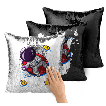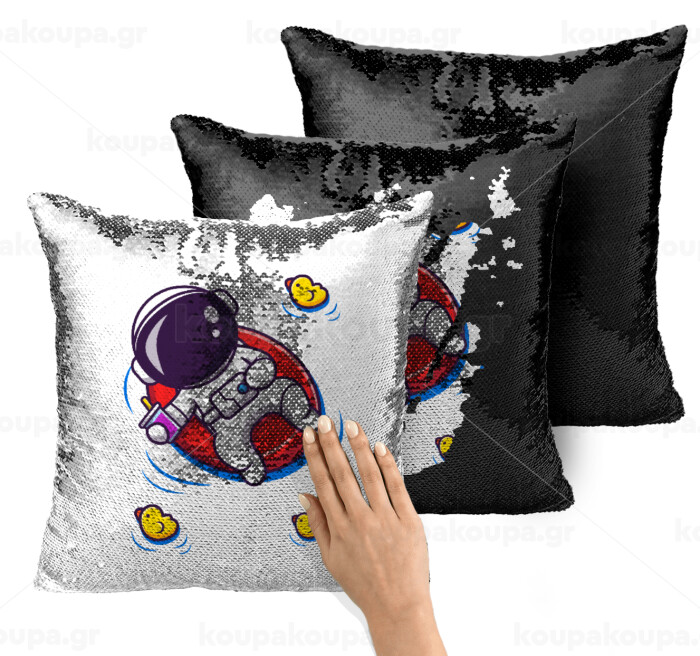 Μικρός αστροναύτης θάλασσα, Μαξιλάρι καναπέ Μαγικό Μαύρο με πούλιες 40x40cm περιέχεται το γέμισμα