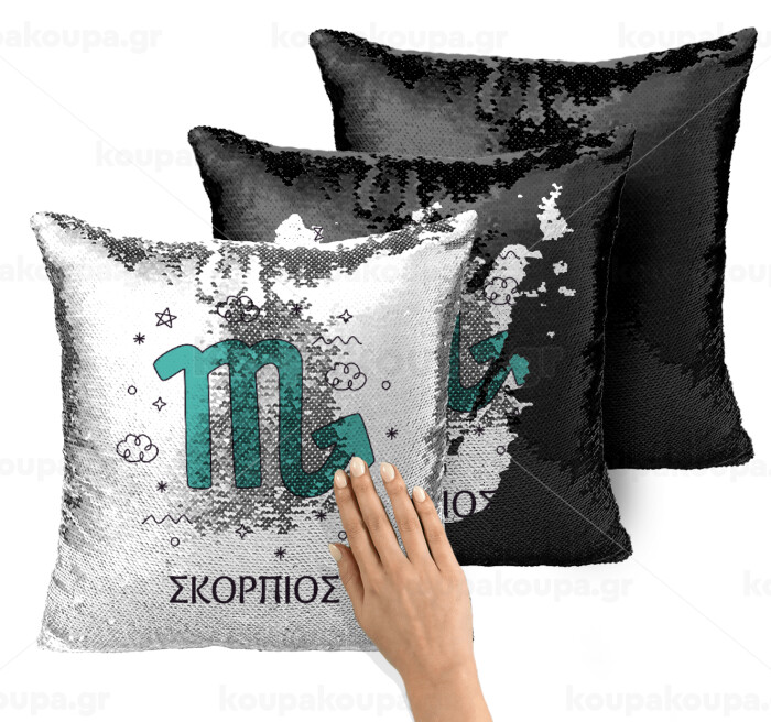 Ζώδια Σκορπιός, Μαξιλάρι καναπέ Μαγικό Μαύρο με πούλιες 40x40cm περιέχεται το γέμισμα