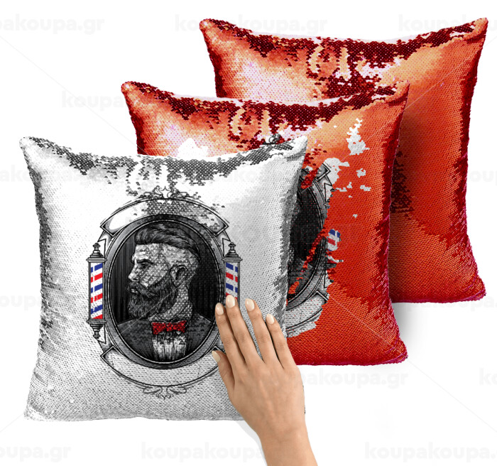 Barber shop, Μαξιλάρι καναπέ Μαγικό Κόκκινο με πούλιες 40x40cm περιέχεται το γέμισμα