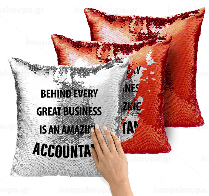 Behind every great business, Μαξιλάρι καναπέ Μαγικό Κόκκινο με πούλιες 40x40cm περιέχεται το γέμισμα