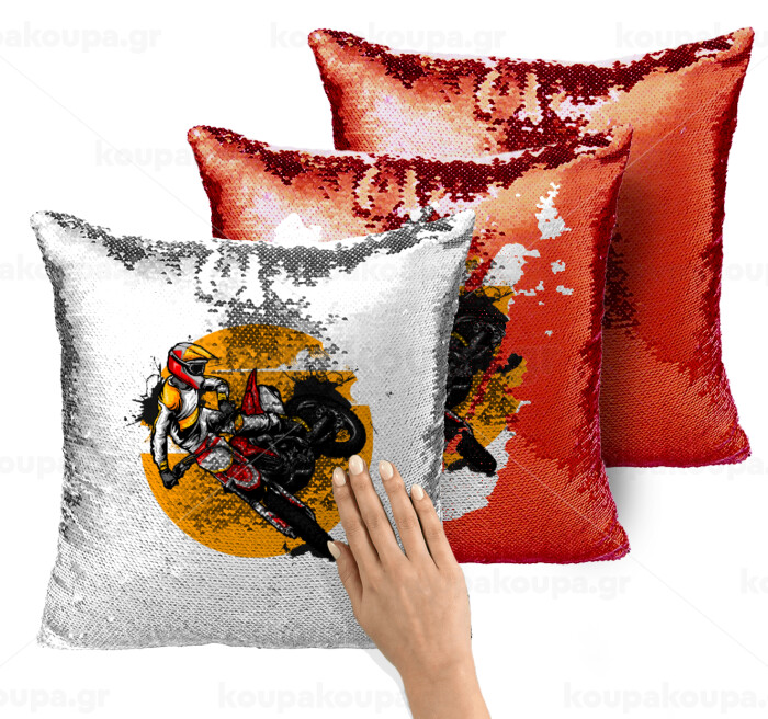 Motocross, Μαξιλάρι καναπέ Μαγικό Κόκκινο με πούλιες 40x40cm περιέχεται το γέμισμα