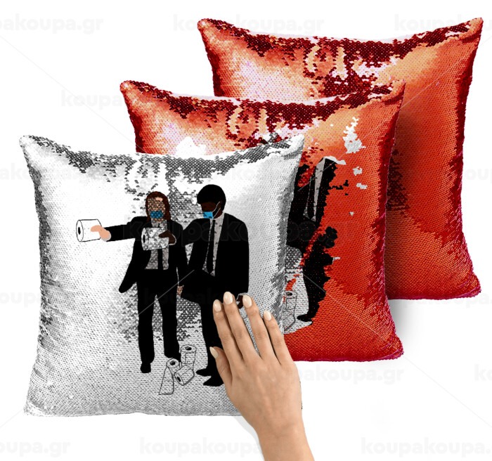 Pulp Fiction 3 meter away, Μαξιλάρι καναπέ Μαγικό Κόκκινο με πούλιες 40x40cm περιέχεται το γέμισμα