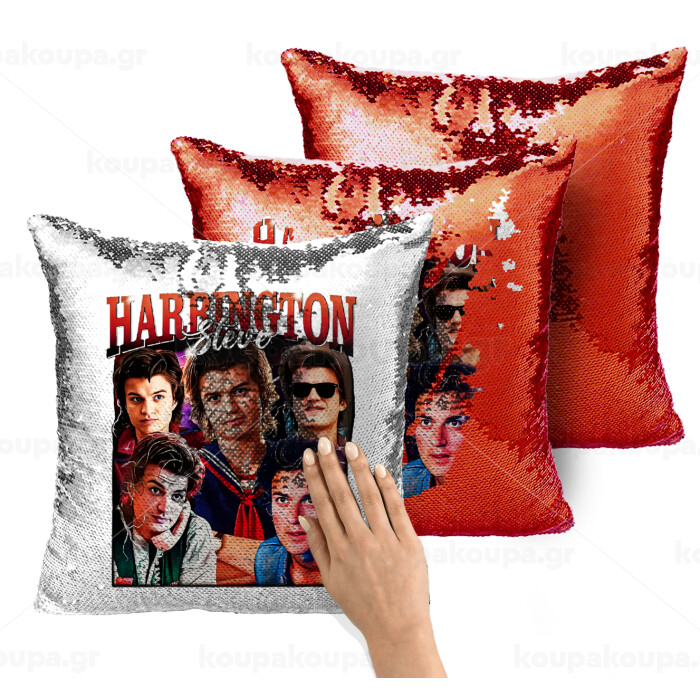 Steve Harrington, Stranger Things, Μαξιλάρι καναπέ Μαγικό Κόκκινο με πούλιες 40x40cm περιέχεται το γέμισμα