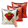 Superman Blue, Μαξιλάρι καναπέ Μαγικό Κόκκινο με πούλιες 40x40cm περιέχεται το γέμισμα