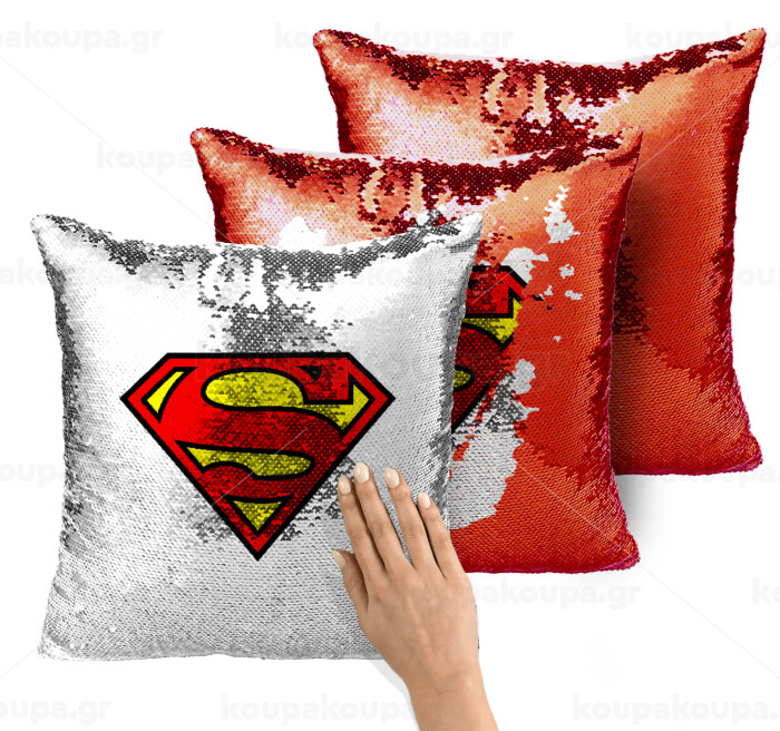 Superman vintage, Μαξιλάρι καναπέ Μαγικό Κόκκινο με πούλιες 40x40cm περιέχεται το γέμισμα