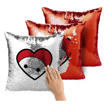 Baymax heart, Μαξιλάρι καναπέ Μαγικό Κόκκινο με πούλιες 40x40cm περιέχεται το γέμισμα