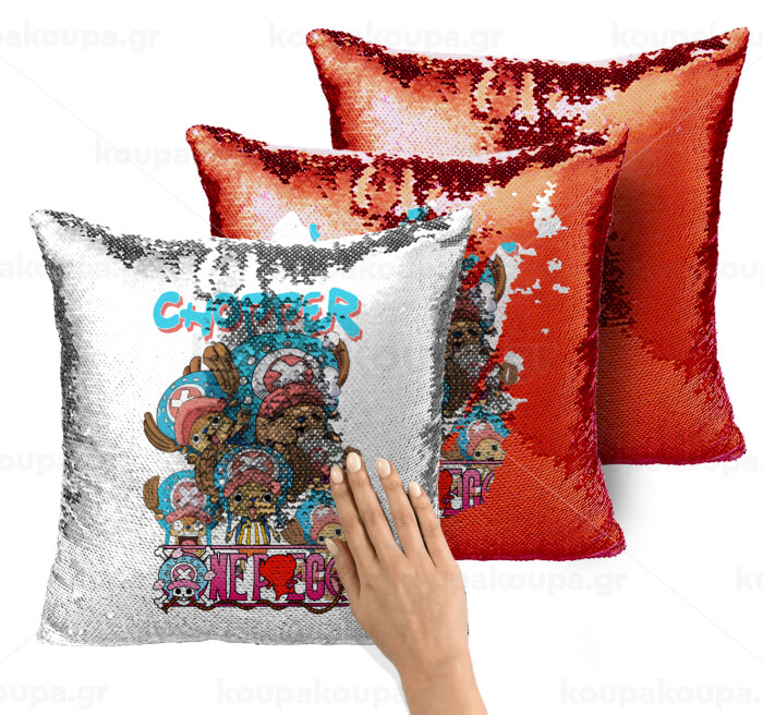 Chopper One Piece, Μαξιλάρι καναπέ Μαγικό Κόκκινο με πούλιες 40x40cm περιέχεται το γέμισμα