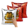 Garfield, Μαξιλάρι καναπέ Μαγικό Κόκκινο με πούλιες 40x40cm περιέχεται το γέμισμα