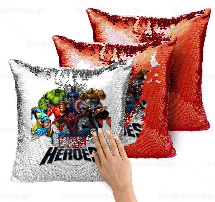 MARVEL heroes, Μαξιλάρι καναπέ Μαγικό Κόκκινο με πούλιες 40x40cm περιέχεται το γέμισμα