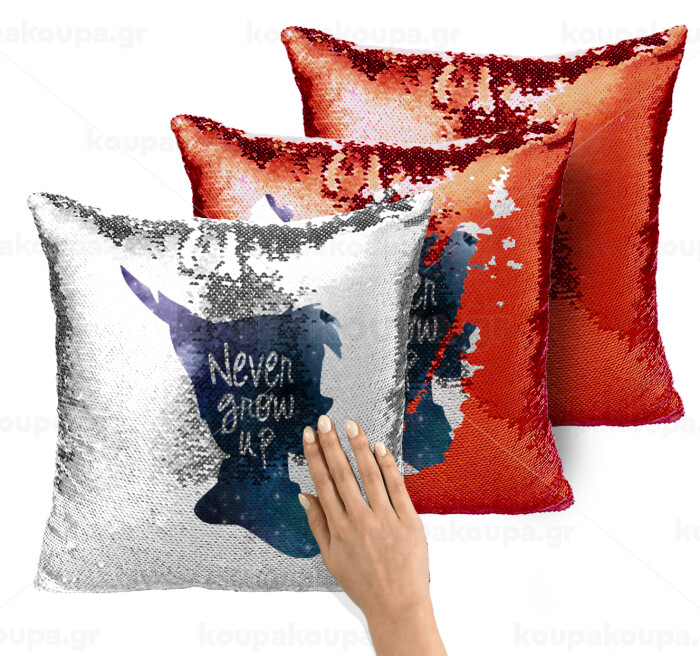 Never Grow UP, Μαξιλάρι καναπέ Μαγικό Κόκκινο με πούλιες 40x40cm περιέχεται το γέμισμα