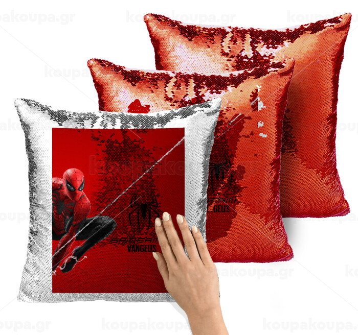 Spiderman, Μαξιλάρι καναπέ Μαγικό Κόκκινο με πούλιες 40x40cm περιέχεται το γέμισμα