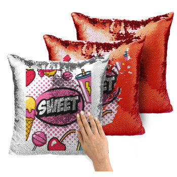 SWEET, Μαξιλάρι καναπέ Μαγικό Κόκκινο με πούλιες 40x40cm περιέχεται το γέμισμα