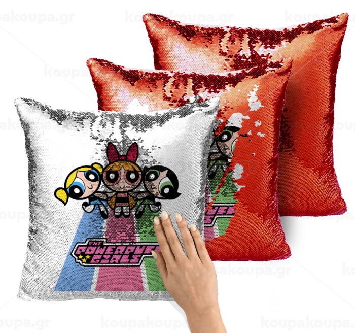 The powerpuff girls , Μαξιλάρι καναπέ Μαγικό Κόκκινο με πούλιες 40x40cm περιέχεται το γέμισμα