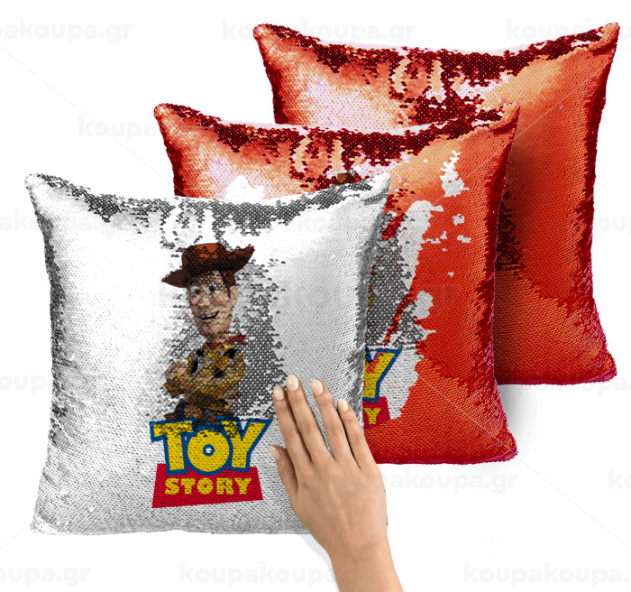 Woody cowboy, Μαξιλάρι καναπέ Μαγικό Κόκκινο με πούλιες 40x40cm περιέχεται το γέμισμα