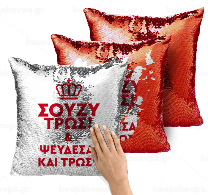 Σούζυ και ψεύδεσαι και τρως, Μαξιλάρι καναπέ Μαγικό Κόκκινο με πούλιες 40x40cm περιέχεται το γέμισμα