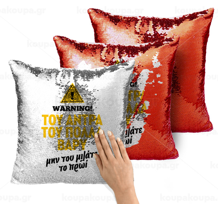 Του άντρα του πολλά βαρύ, Μαξιλάρι καναπέ Μαγικό Κόκκινο με πούλιες 40x40cm περιέχεται το γέμισμα