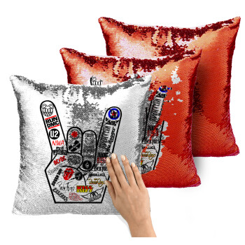 Best Rock Bands hand, Μαξιλάρι καναπέ Μαγικό Κόκκινο με πούλιες 40x40cm περιέχεται το γέμισμα