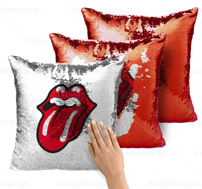 Rolling Stones Kiss, Μαξιλάρι καναπέ Μαγικό Κόκκινο με πούλιες 40x40cm περιέχεται το γέμισμα