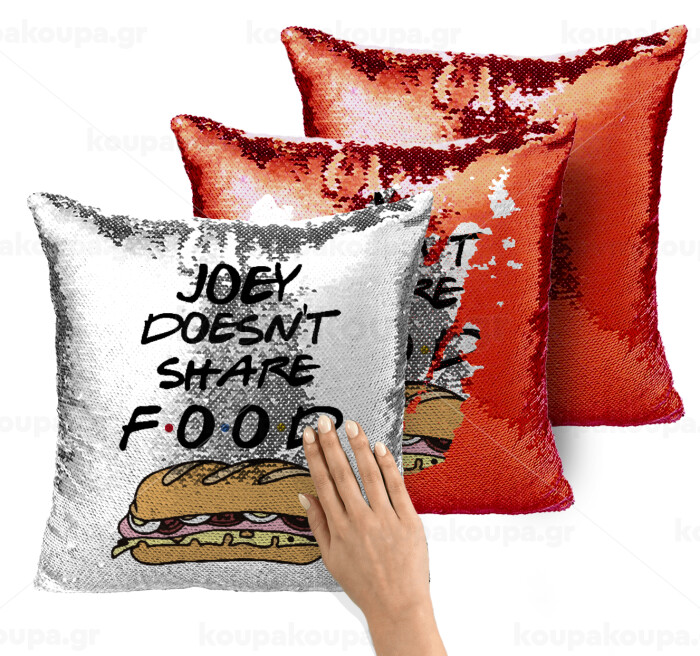 Joey Doesn't Share Food, Μαξιλάρι καναπέ Μαγικό Κόκκινο με πούλιες 40x40cm περιέχεται το γέμισμα