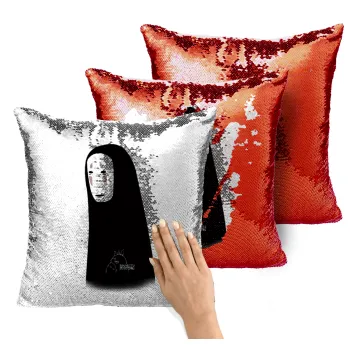 Spirited Away No Face, Μαξιλάρι καναπέ Μαγικό Κόκκινο με πούλιες 40x40cm περιέχεται το γέμισμα