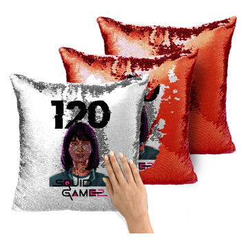 Squid game 120 Cho Hyun-ju, Μαξιλάρι καναπέ Μαγικό Κόκκινο με πούλιες 40x40cm περιέχεται το γέμισμα