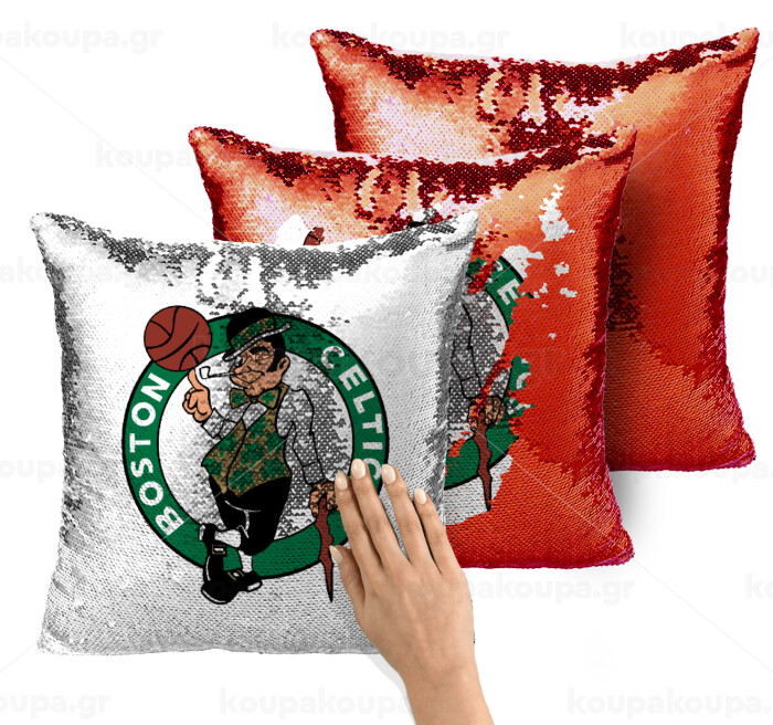 Boston Celtics, Μαξιλάρι καναπέ Μαγικό Κόκκινο με πούλιες 40x40cm περιέχεται το γέμισμα