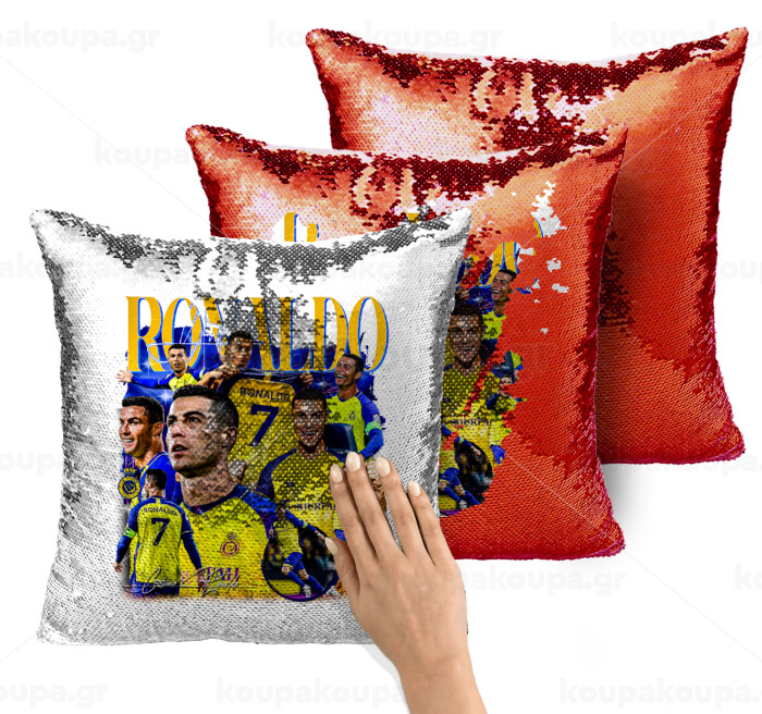 Cristiano Ronaldo Al Nassr, Μαξιλάρι καναπέ Μαγικό Κόκκινο με πούλιες 40x40cm περιέχεται το γέμισμα