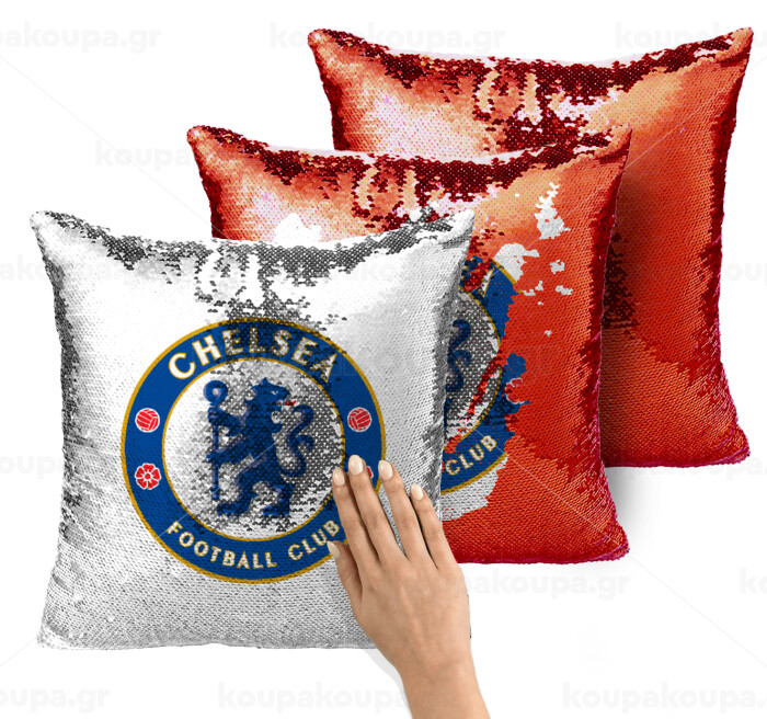 FC Chelsea, Μαξιλάρι καναπέ Μαγικό Κόκκινο με πούλιες 40x40cm περιέχεται το γέμισμα